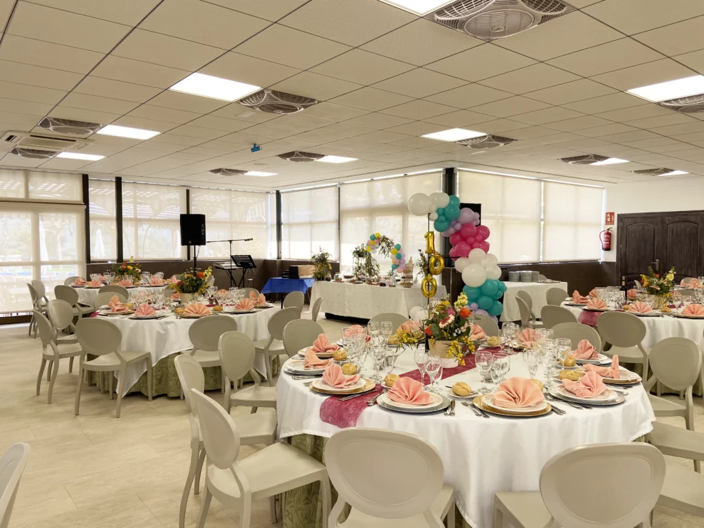 Nuestros salones interiores y zonas exteriores permiten organizar eventos con espacio suficiente para que los invitados se muevan con tranquilidad y disfruten.